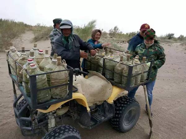 萬(wàn)事開(kāi)頭難!由于古日乃地區(qū)嚴(yán)重缺水,常年處于干旱狀態(tài),剛開(kāi)始,老倆口種的樹(shù)成活率不高?墒,面對(duì)低成活率和惡劣的環(huán)境,固執(zhí)的圖布巴圖沒(méi)有動(dòng)搖,而是買(mǎi)了相關(guān)書(shū)籍,從書(shū)里找答案,向林業(yè)等相關(guān)部門(mén)專(zhuān)業(yè)技術(shù)人員求教!在樹(shù)種選擇上下功夫,從“源頭”開(kāi)始提高造林成活率。經(jīng)過(guò)與專(zhuān)業(yè)人員探討,他們挑選適宜本地區(qū)種植的耐旱、耐鹽堿的梭梭等優(yōu)良草科植物。因地制宜、因時(shí)搶栽。春天風(fēng)大,夫妻倆把梭梭苗泡在水里,等風(fēng)勢(shì)減弱時(shí),搶時(shí)間栽種,像是跟老天爺玩捉迷藏,常常累得喘不過(guò)氣來(lái)!夏天是梭梭苗補(bǔ)水的季節(jié),沙漠中的氣溫高達(dá)45℃以上,夫妻倆頂著似火驕陽(yáng)一趟趟拉水澆灌。45℃的高溫下,普通人坐著都覺(jué)得難忍,何況是60多歲的老人,還要在烈日下勞作!那種艱難是我們無(wú)法想象的……