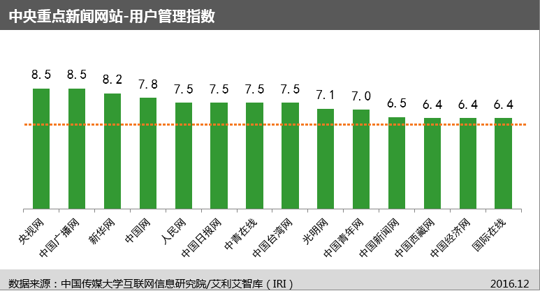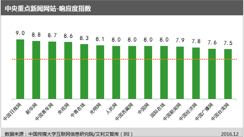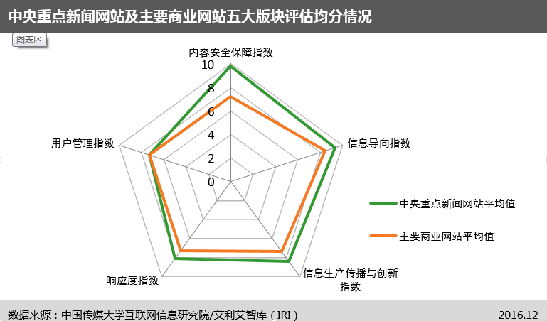信息生產(chǎn)傳播與創(chuàng)新方面、信息導(dǎo)向以及內(nèi)容安全保障方面,中央重點新聞網(wǎng)站表現(xiàn)較好,各網(wǎng)站之間差異不大;用戶管理、響應(yīng)度方面,整體仍還需要加強。
