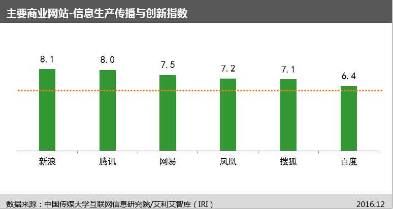 論壇上,研究院亦發(fā)布了2016年12月份的《國內(nèi)主要新聞網(wǎng)站信息生態(tài)首期評估報告》,報告的測評范圍包括國內(nèi)14家中央重點新聞網(wǎng)站、6家主要商業(yè)新聞網(wǎng)站。具體呈現(xiàn)以下特點: