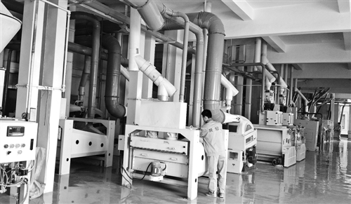 上圖 遼寧盤錦市鼎翔米業(yè)公司引進具有世界先進水平的大米加工生產(chǎn)線,確保大米加工品質(zhì)。圖為工人在檢查大米加工情況。 經(jīng)濟日報記者 劉 慧攝
