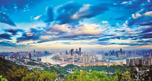 藍(lán)天白云下的重慶城。(資料圖片)