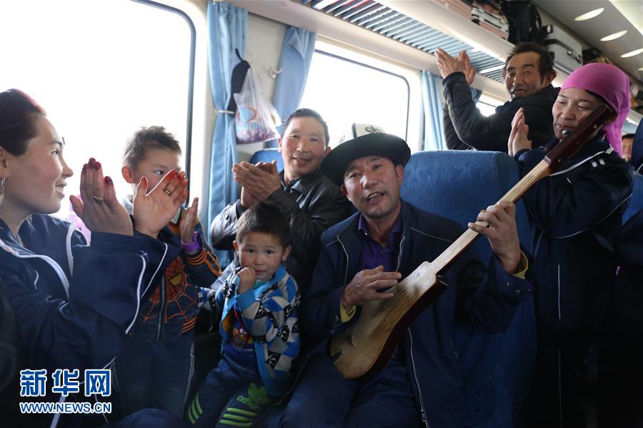 托合塔洪·斯迪克在火車上彈奏庫姆孜(1月6日攝)。一年一度的春運尚未開始,48歲的牧民托合塔洪·斯迪克就攜妻子和6歲的小兒子從西北邊陲的新疆喀什搭乘火車,趕往5500多公里外的福建泉州。在春運返鄉(xiāng)的大潮中,他們選擇“逆流”務(wù)工。新華社發(fā)(曹永祺攝)