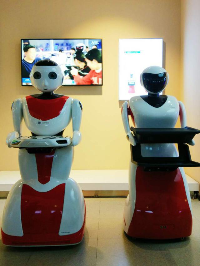 這兩款是餐飲機器人,外形小巧圓潤,笑容憨態(tài)可掬,既可以點菜和送餐,還具有重力感應(yīng)、自動避障、語音對話等功能。在餐廳遇到這樣的服務(wù)員,一定是場新奇的用餐體驗。