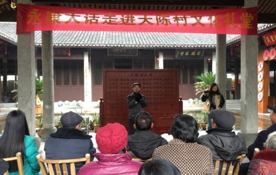 大陳村文化禮堂是傳承和發(fā)揚(yáng)傳統(tǒng)文化的載體之一 。文化禮堂在2012年創(chuàng)建,2013年組織了“祭祖”活動(dòng),2014年舉行了“成人禮”儀式,2015年開設(shè)了“孝道講堂”、“國學(xué)講壇”……一直以來,這個(gè)依山傍水的文化禮堂不斷結(jié)合本村優(yōu)勢(shì),挖掘傳統(tǒng)文化,開展特色活動(dòng)。