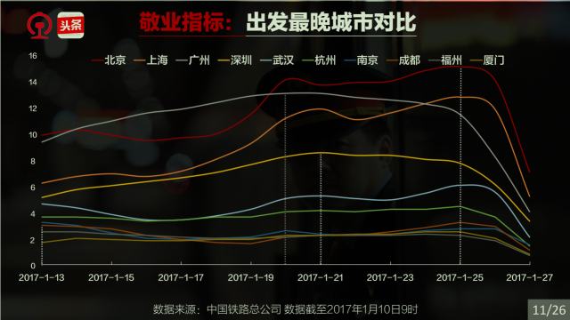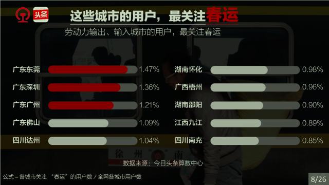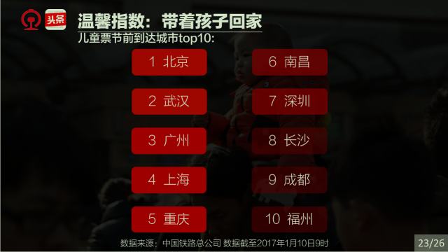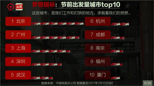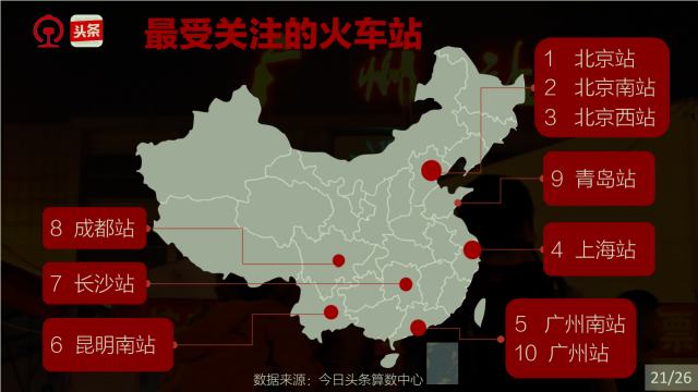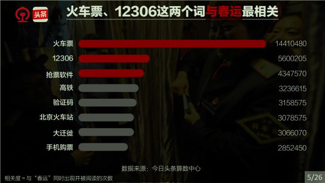 春運是社會,春運是文化,春運縮影國與家。一年一度的春運,承載著國人的情感、目光和腳步。他們在關注著什么,他們的出行有什么規(guī)律,哪些城市、哪些人群又和春運關聯(lián)度最高。中國鐵路和今日頭條通過對2017年春運鐵路購票數(shù)據(jù)和今日頭條客戶端閱讀數(shù)據(jù)的分析,告訴你一個縮影國與家的春運。