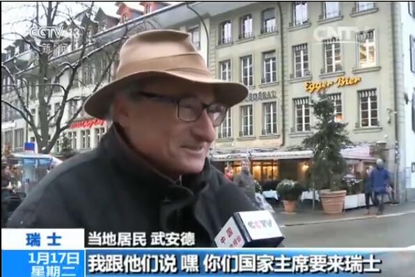 記者在街頭進(jìn)行隨機(jī)采訪,當(dāng)問到當(dāng)?shù)鼐用癜驳卖斒欠裰懒?xí)主席來訪瑞士時,他表示很高興看到習(xí)主席訪問瑞士,瑞士是一個進(jìn)行交流的很好的地點(diǎn)。旅游業(yè)對兩國來說十分重要,現(xiàn)在有很多瑞士人去中國,因?yàn)橹袊莻能激起人們興趣的國家,能見識到多種文化、悠久的歷史,而且中國的交通和鐵路線路非,F(xiàn)代。另一位被采訪的居民武安德更是風(fēng)趣的說,他在中國的朋友要他多拍點(diǎn)習(xí)近平主席的照片。