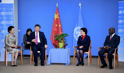 中新社日內(nèi)瓦1月18日電 (記者 蔣濤)中國國家主席習(xí)近平18日在日內(nèi)瓦訪問了世界衛(wèi)生組織并會見陳馮富珍總干事。