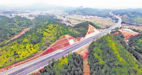 1月4日,寧安高速公路于都縣禾豐段俯瞰。當(dāng)日,江西省寧安高速等12條新建成高速公路同時(shí)通車,標(biāo)志著江西省高速公路總里程基本建成6000公里。經(jīng)濟(jì)日?qǐng)?bào)記者 賴永峰攝
