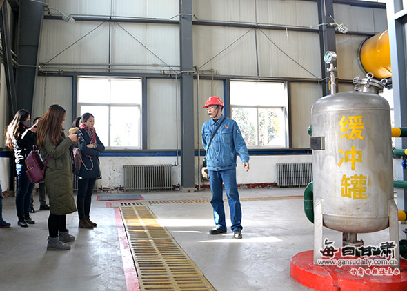 張建軍介紹蘭石化在綠色環(huán)保方面所做出的努力和成果。(每日甘肅網(wǎng)記者周飛/攝)