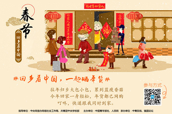 中青在線訊(中國青年報·中青在線記者 李博晶)春節(jié)回鄉(xiāng),您今年是否有更多的獲得感、幸福感?在雞年新春到來之際,在一年一度人口大遷徙之際,在國家網(wǎng)信辦網(wǎng)絡(luò)社會工作局、共青團中央學校部指導下,中國青年報社、人民網(wǎng)共同發(fā)起“中國好網(wǎng)民·回鄉(xiāng)看中國”2017尋找百名青年觀察員行動。