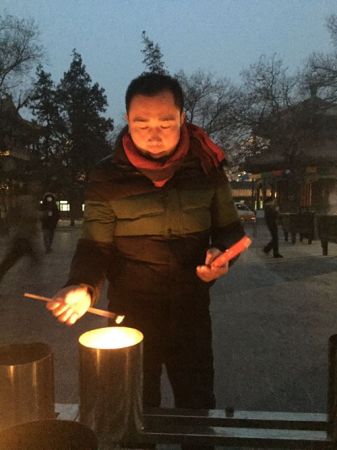 昨天凌晨三點(diǎn)多,北京晨報(bào)記者來(lái)到雍和宮的大門外,此時(shí)門口已有幾十人在排隊(duì)等待。來(lái)自湖北潛江的王凡排在隊(duì)伍的最前端,他已經(jīng)連續(xù)3年搶到大年初一的頭炷香。為此他2014年排了48小時(shí),2015年排了77小時(shí),2016年排了35小時(shí)?吹接浾,王凡開心地打起了招呼。他稱,自己三天前就從湖北趕到北京,就是為了搶頭香。“今年的頭香也是囊中之物!彼f(shuō),為了能夠順利搶到頭香,今年還帶了侄子和三個(gè)徒弟幫忙。“整個(gè)環(huán)節(jié)我都太熟悉了”,他十分有信心。