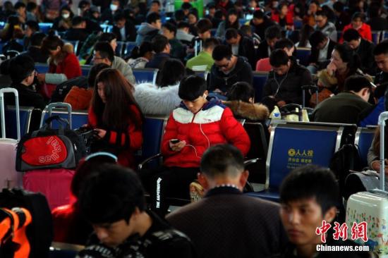 2月1日,山西太原,民眾在火車站準(zhǔn)備乘車。當(dāng)日,中國鐵路迎來返程客流高峰。 中新社記者 張?jiān)?攝