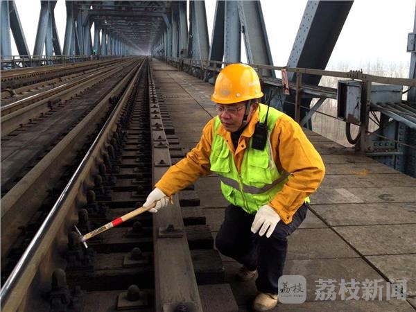 “這個銹蝕點有點嚴重,需要清除重新做油漆?、咳……”1月28日,在離江面30多米的南京長江大橋鐵路橋面上巡守的劉為保被猛烈的江風灌得直咳嗽。54歲的劉為保是上海鐵路局南京橋工段一名巡線工,今年春運是他陪伴南京長江大橋的第 37 個春運,“大橋就是一個瀏覽歷史的窗口。從中,你會看到許多別致的風景。”劉為保說。