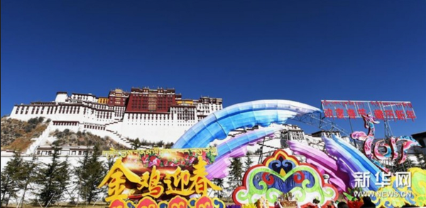 拉薩布達拉宮廣場春節(jié)裝飾。新華社記者 普布扎西 攝