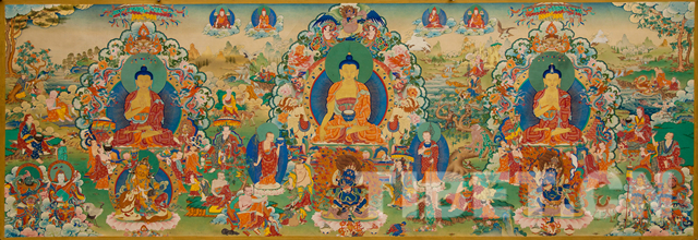 被聯(lián)合國(guó)教科文組織認(rèn)定為世界非物質(zhì)文化遺產(chǎn)的“唐卡”藝術(shù),作為藏文化中一種獨(dú)具特色的繪畫藝術(shù)形式,頗受國(guó)際關(guān)注和各界青睞。覺(jué)囊唐卡藝術(shù)從唐宋之際發(fā)源,至元明時(shí)期醇熟,已具有千年的傳承歷史,尤以典雅的禪風(fēng)古韻著稱。由于素來(lái)秉持清凈禪修的佛門宗風(fēng),故而與僧侶生息相伴的宗教藝術(shù),也深深浸潤(rùn)著禪修者的空靈、灑脫與莊嚴(yán)。覺(jué)囊傳習(xí)的禪樂(lè)梵音、唐卡藝術(shù)、藏醫(yī)藥、時(shí)輪壇城等眾多內(nèi)容被列入國(guó)家非物質(zhì)文化遺產(chǎn)名錄。