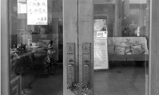 更多的場(chǎng)所不僅停業(yè),還關(guān)門(mén)了。記者在“大富豪足道會(huì)館”看到“消防整改,暫停營(yíng)業(yè)”這樣的紙條貼在門(mén)口。這家店原本也只提供足浴服務(wù),后來(lái)經(jīng)過(guò)裝修,增加了汗蒸等項(xiàng)目。離這個(gè)足道館幾十米外,還有一家“西子人間會(huì)所”,同樣大門(mén)緊閉。