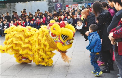 2月9日,在廣東省佛山市禪城區(qū)祖廟內(nèi)的黃飛鴻紀(jì)念館,醒獅團(tuán)隊(duì)為前來觀光的游客獻(xiàn)上精彩的舞獅表演,帶來新春祝福,喜迎元宵佳節(jié)。圖為醒獅表演者在現(xiàn)場與游客互動(dòng)。