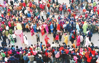 ![]() 豫東地區(qū)流行的踩高蹺表演(閆廣君攝) ![]() 鬧燈籠(圖/王偉賓)