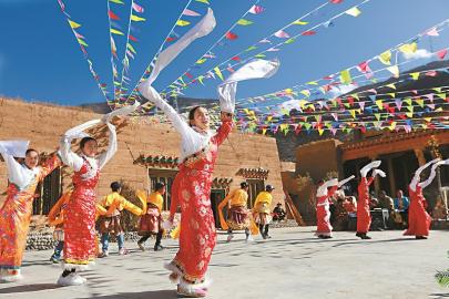 甘孜、阿壩兩州春節(jié)“五下鄉(xiāng)”活動,豐富藏區(qū)群眾文化生活。圖為鄉(xiāng)城縣青德鎮(zhèn)布機(jī)村演出現(xiàn)場。