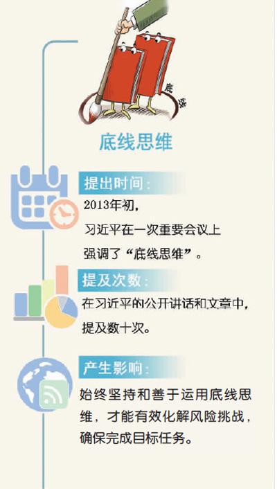 堅(jiān)持底線思維,是以習(xí)近平同志為核心的黨中央保持戰(zhàn)略定力、應(yīng)對(duì)錯(cuò)綜復(fù)雜形勢(shì)的科學(xué)方法,更是推動(dòng)新一輪改革發(fā)展的治理智慧。