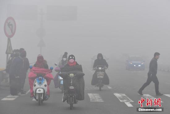 石家莊民眾“霾頭”出行(資料圖)。 中新社記者 翟羽佳 攝