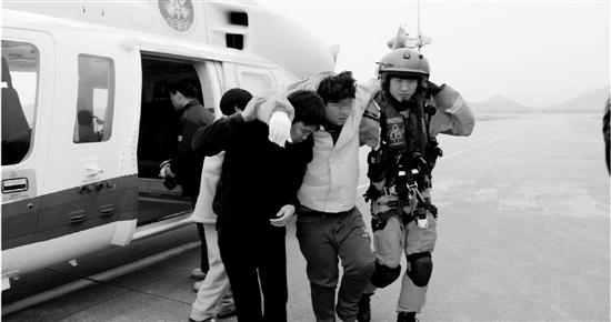 昨天傍晚5點35分,東海救助局一架直升機降落舟山普陀山機場,里面搭載著獲救的“冀黃漁02698”船7名船員,他們走出機艙時臉色沉重,其中一名船員因左腳受傷,只能被攙扶著出來。其余13名船員仍下落不明,搜救工作仍在繼續(xù)。