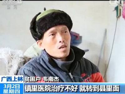 這兩天,廣西上林縣的醫(yī)生們正在下村,摸底“因病致貧”的貧困戶(hù)情況,全國(guó)政協(xié)委員錢(qián)學(xué)明也專(zhuān)門(mén)趕來(lái)一起調(diào)研。他走訪的廣西上林縣,是國(guó)家級(jí)貧困縣。這里的貧困戶(hù),30%是“因病致貧”。在調(diào)研中他發(fā)現(xiàn),貧困戶(hù)反映最大的問(wèn)題,就是看病遠(yuǎn)、看病貴。