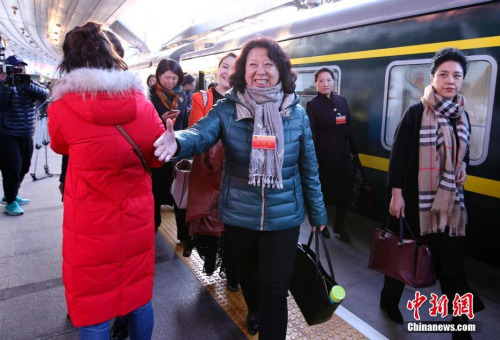 3月2日清晨,出席十二屆全國人大五次會(huì)議的黑龍江代表團(tuán)乘火車抵達(dá)北京,成為首批抵京的京外代表。 中新社記者 劉震 攝
