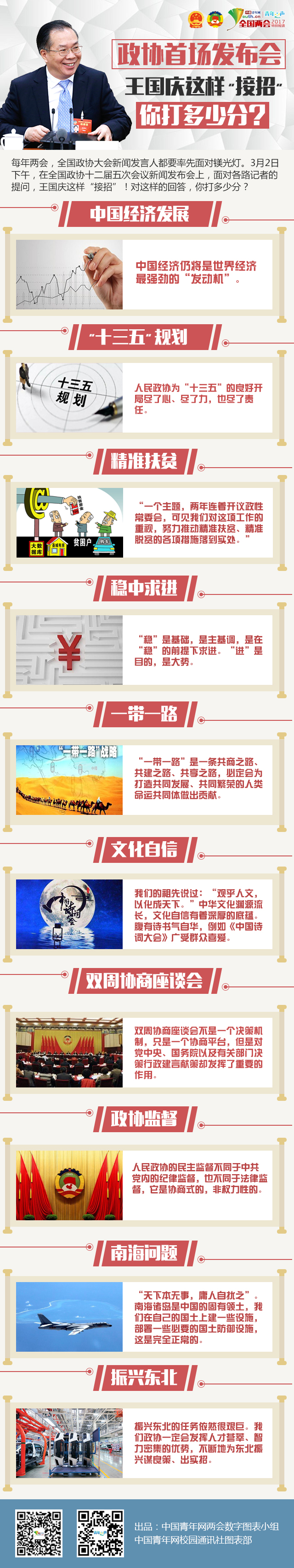 每年兩會,全國政協(xié)大會新聞發(fā)言人都要率先面對鎂光燈。3月2日下午,在全國政協(xié)十二屆五次會議新聞發(fā)布會上,面對各路記者的提問,王國慶這樣"接招"!對這樣的回答,你打多少分?