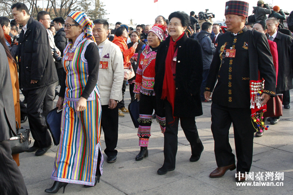 身著靚麗服飾的少數(shù)民族代表。(中國臺灣網(wǎng) 王怡然 攝)