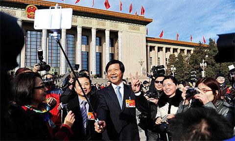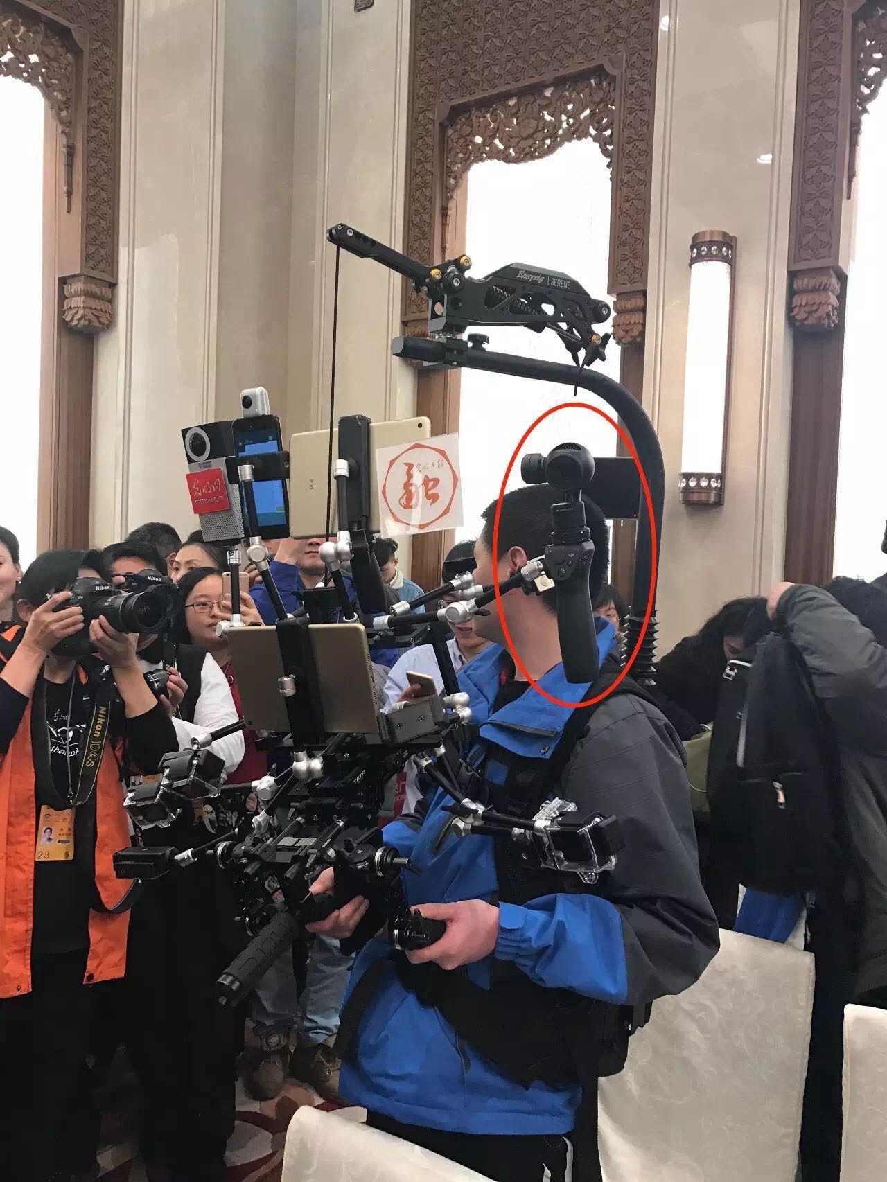 所以上面兩會美女拿的Osmo Mobile正好解決這個問題。不僅如此,它還可以自拍(這個后面會展開講),看起來比下面這款高級點(diǎn)。