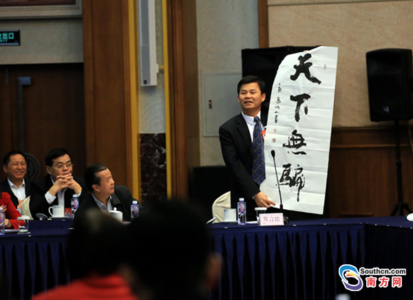 “電信詐騙是高科技、信息化、專業(yè)化的犯罪。為懲治犯罪,國家為此投入巨大成本!痹诮裉斓膹V東代表團(tuán)全體會(huì)議上,揪著電信詐騙問題已達(dá)八年之久的基層人大代表陳偉才再次就如何打擊跨境電信詐騙發(fā)聲,并重提到相關(guān)部門應(yīng)在源頭開展治理,堵住漏洞。為了讓與會(huì)的其他人大代表更好地了解打擊跨境電信詐騙的迫切性和重要性,他還亮出了自制的三塊圖解作詳細(xì)說明,他希望能完成一個(gè)小目標(biāo)——天下無騙!