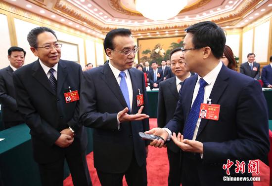 審議中,李錦斌、李國英、劉慶峰等代表分別圍繞貫徹新發(fā)展理念、培育新動能、發(fā)展民營經濟等作了發(fā)言。李克強與大家深入交流。
