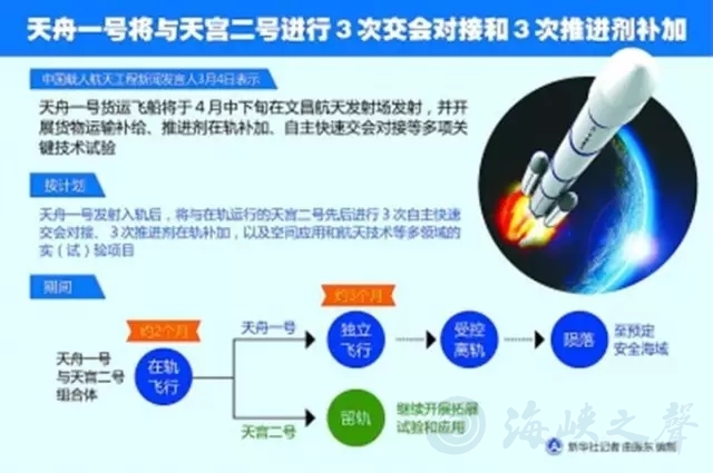 2017年4月中下旬,中國(guó)載人航天工程空間實(shí)驗(yàn)室階段的收官之戰(zhàn)——天舟一號(hào)貨運(yùn)飛船的發(fā)射任務(wù)即將展開。天舟一號(hào)貨運(yùn)飛船將首試“太空加油”,開展貨物運(yùn)輸補(bǔ)給、推進(jìn)劑在軌補(bǔ)加、自主快速交會(huì)對(duì)接等多項(xiàng)關(guān)鍵技術(shù)試驗(yàn)。這將標(biāo)志著中國(guó)載人航天工程勝利完成“三步走”戰(zhàn)略中的“第二步”任務(wù),為空間站建設(shè)任務(wù)奠定堅(jiān)實(shí)技術(shù)基礎(chǔ)。