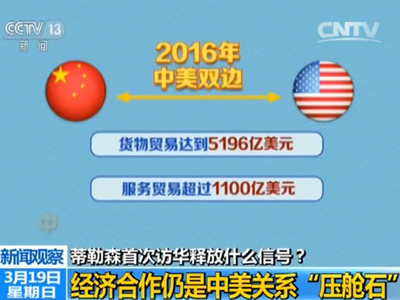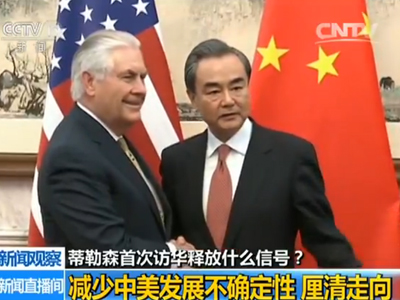 近一段時(shí)間以來(lái),中美互動(dòng)頻繁。2月10日,中國(guó)國(guó)家主席習(xí)近平與美國(guó)總統(tǒng)特朗普通電話(huà)。2月17日,中國(guó)外交部長(zhǎng)王毅與蒂勒森在德國(guó)會(huì)晤。2月21日中國(guó)國(guó)務(wù)委員楊潔篪與蒂勒森首次通電話(huà)、并于28日訪(fǎng)美與蒂勒森舉行會(huì)談。專(zhuān)家表示,時(shí)隔半個(gè)多月,蒂勒森訪(fǎng)華與中國(guó)高層面對(duì)面會(huì)晤,中美將厘清兩國(guó)關(guān)系發(fā)展的走向,向世界發(fā)出中美關(guān)系未來(lái)聚焦合作的明確信號(hào)。