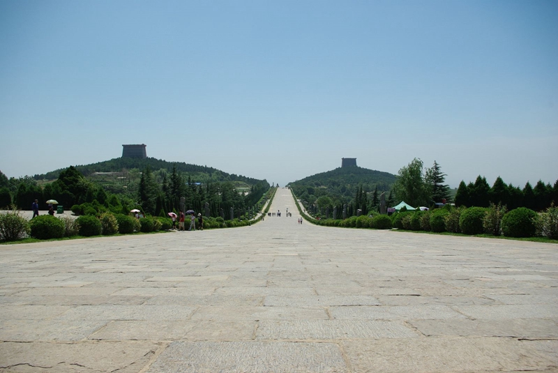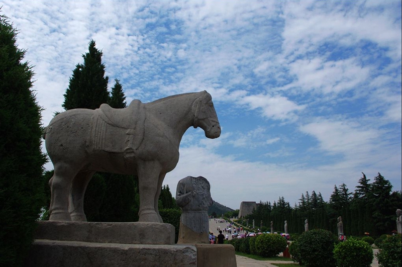 唐高宗李治和武則天合葬墓地,位于陜西咸陽的乾縣。建成于唐光宅元年(684年),神龍二年(706年)加蓋,采用“因山為陵”的建造方式,陵區(qū)仿京師長安城建制。除主墓外,乾陵還有十七個小型陪葬墓,葬有其他皇室成員與功臣。一對夫婦,兩朝皇帝,合葬一室,而且在千年的時間里原封未動,這在中國歷代帝陵中都是最特殊的一個。