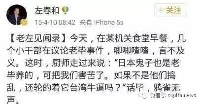 今年1月,左春和被免去石家莊文化廣電新聞出版局副局長(zhǎng)的職務(wù),原因是在微博發(fā)表錯(cuò)誤言論,嚴(yán)重違反政治紀(jì)律。