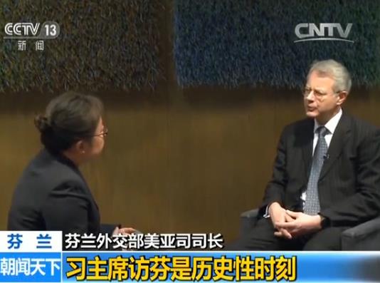 芬蘭外交部美亞司司長泉溪在接受央視記者采訪時表示,非常高興中國國家主席習近平對芬蘭進行國事訪問,中芬兩國有著傳統(tǒng)、務實的合作關系,希望未來能有更長足的發(fā)展。