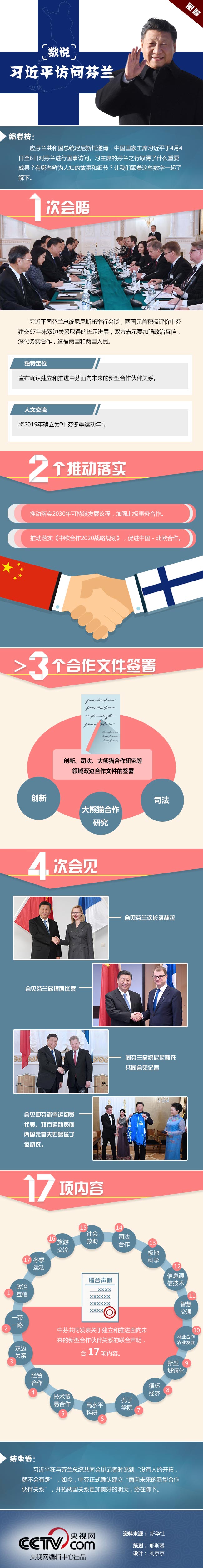 央視網(wǎng)消息:應(yīng)芬蘭共和國總統(tǒng)尼尼斯托邀請,中國國家主席習(xí)近平于4月4日至6日對芬蘭進行國事訪問。習(xí)主席的芬蘭之行取得了什么重要成果?有哪些鮮為人知的故事和細節(jié)?讓我們跟著這些數(shù)字一起了解下。