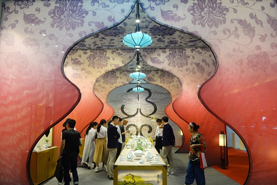 參觀者在中國景德鎮(zhèn)國際陶瓷博覽會上參觀(2016年10月18日攝)。擁有1700多年制瓷歷史的景德鎮(zhèn),以其“白如玉、薄如紙、明如鏡、聲如磬”的瓷器制品享譽(yù)世界。自隋唐以來,景德鎮(zhèn)的陶瓷就是海上“絲綢之路”上的大宗商品。新華社記者 萬象/攝