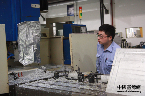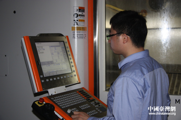 陳閏祥操作工作機器。(中國臺灣網(wǎng) 王錫朋 攝)