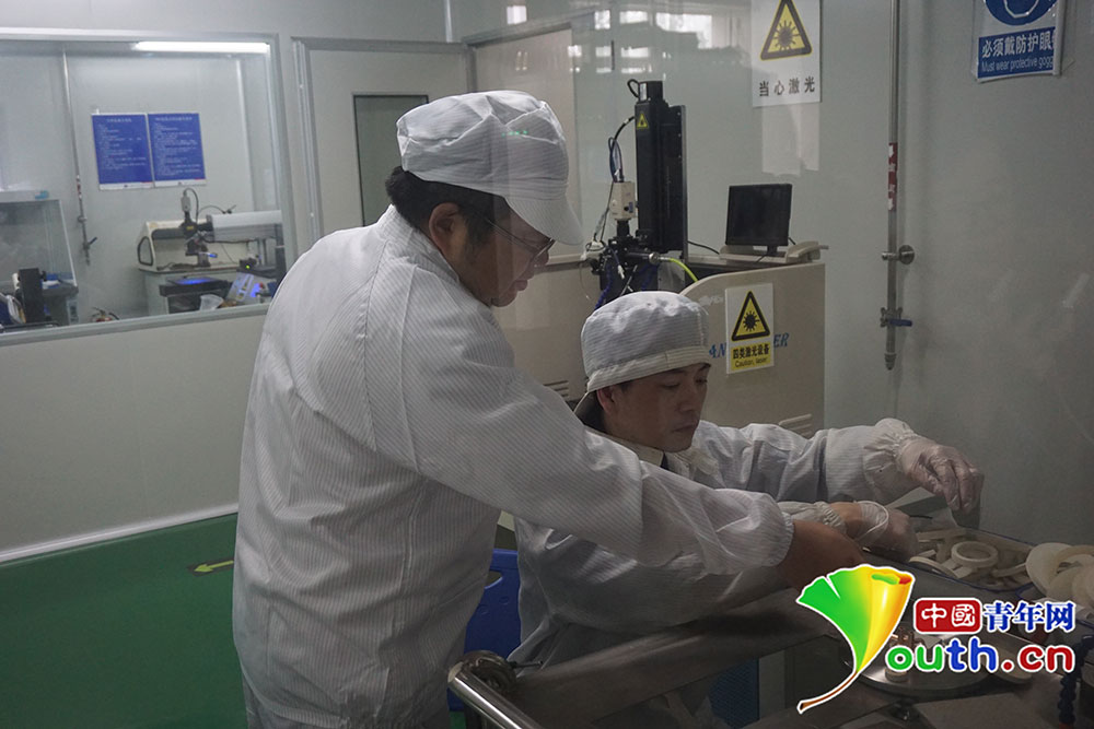 劉勁松指導(dǎo)徒弟做實(shí)驗(yàn)。中國(guó)青年網(wǎng)記者 楊月 攝