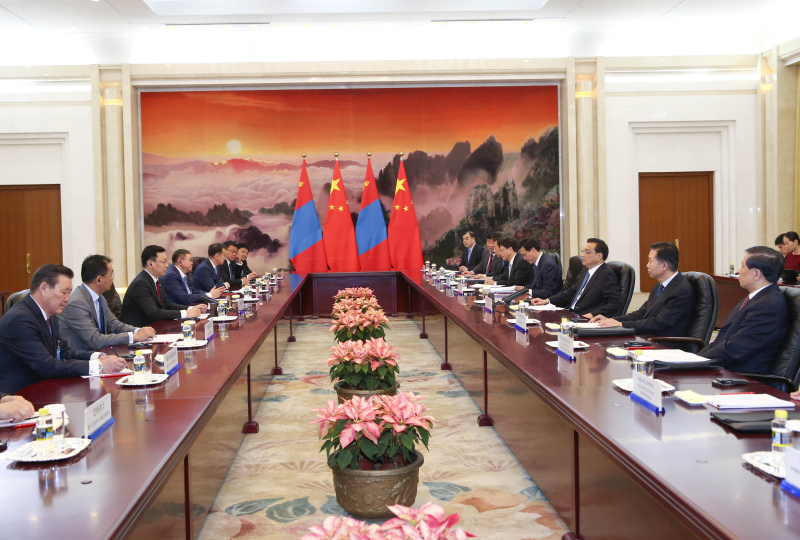 李克強(qiáng)表示,中蒙兩國(guó)是友好鄰邦和全面戰(zhàn)略伙伴。雙方要繼續(xù)本著相互尊重、平等相待的原則,切實(shí)尊重彼此核心利益和重大關(guān)切,鞏固中蒙關(guān)系的政治基礎(chǔ)。我們?cè)讣涌臁耙粠б宦贰背h同蒙方“發(fā)展之路”戰(zhàn)略對(duì)接,加大對(duì)跨境口岸建設(shè)和跨境經(jīng)貿(mào)合作的投入,做好中蒙自貿(mào)區(qū)聯(lián)合可行性研究相關(guān)工作,提升兩國(guó)經(jīng)貿(mào)合作水平。落實(shí)好住宅建設(shè)、農(nóng)畜產(chǎn)品深加工、能源資源利用等領(lǐng)域達(dá)成的合作共識(shí),更好實(shí)現(xiàn)互利共贏、共同發(fā)展。