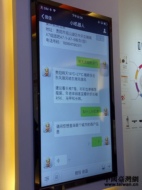 小i人工智能服務(wù)平臺現(xiàn)場演示。(中國臺灣網(wǎng) 黃露佳 攝)