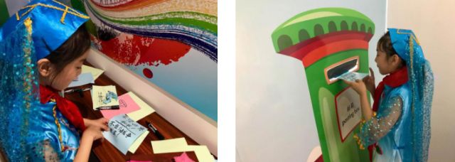 來(lái)自海淀區(qū)民族小學(xué)的女孩丁乙烜寫(xiě)下自己的心愿卡并投入郵箱