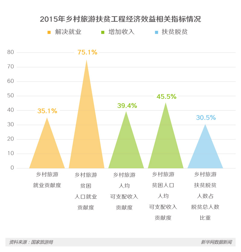 鄉(xiāng)村旅游既是農(nóng)民就業(yè)的重要渠道之一,也已成為有效吸納貧困人口就業(yè)的主要途經(jīng),進(jìn)而逐漸成為農(nóng)村貧困人口脫貧的重要力量。國(guó)家旅游局發(fā)布的《全國(guó)鄉(xiāng)村旅游扶貧觀測(cè)報(bào)告》顯示,2015年,鄉(xiāng)村旅游帶來的農(nóng)民人均收入占農(nóng)民人均年收入的39.4%,貧困村通過鄉(xiāng)村旅游脫貧人數(shù)達(dá)264萬人,占全國(guó)脫貧總?cè)藬?shù)的18.3%。