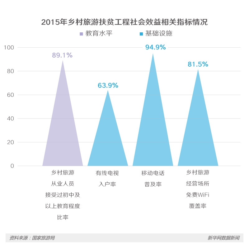 此外,鄉(xiāng)村旅游也帶來了相應(yīng)的社會(huì)效益,統(tǒng)計(jì)數(shù)據(jù)顯示,2015年我國(guó)近90%的鄉(xiāng)村旅游從業(yè)人員為初中及以上教育程度,高于農(nóng)業(yè)從業(yè)人員的平均水平。
