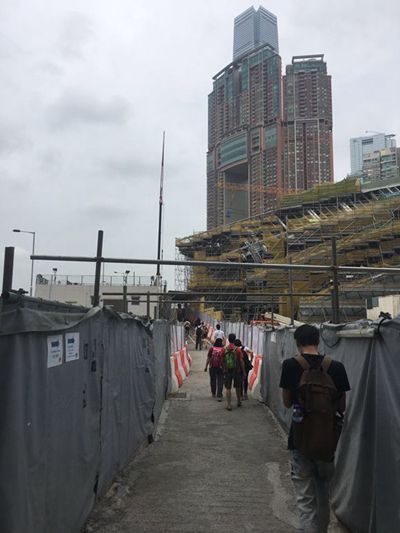 香港市民穿過高鐵工地臨時開辟的通道