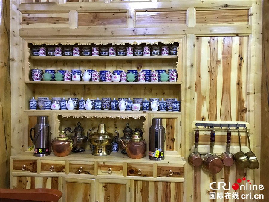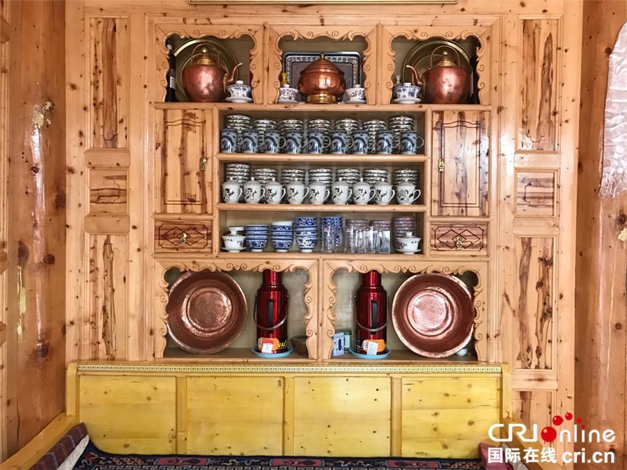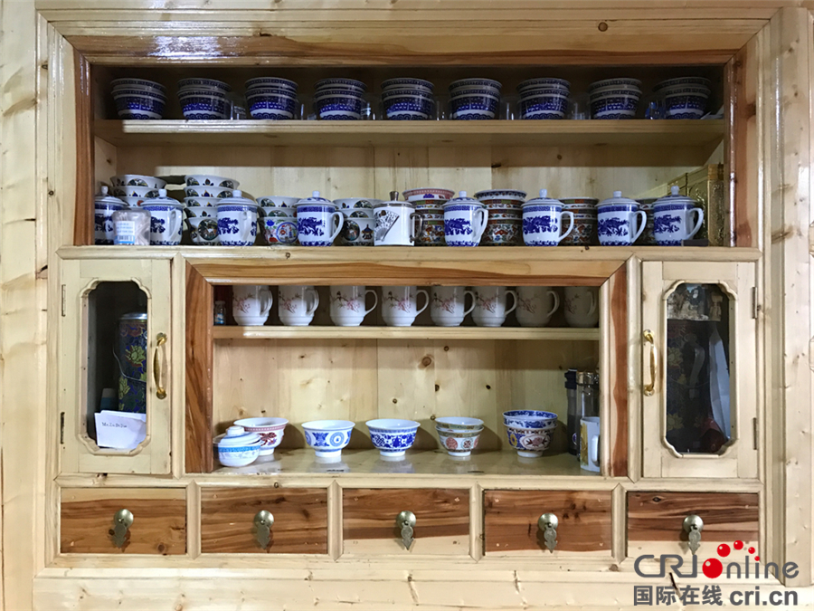 櫥柜內(nèi)擺放的整齊有序的茶杯茶壺也是藏民家里的“美麗風(fēng)景線”