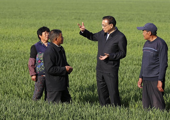 2017年4月20日下午,李克強在山東濟南曲家村察看春季小麥長勢。
